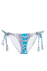 Sizzle this summer with the Snake Skin Print Bottom with Braided Strings by Envya. This suit will turn heads with its snake skin print, wooden ring accents, and braided side ties.