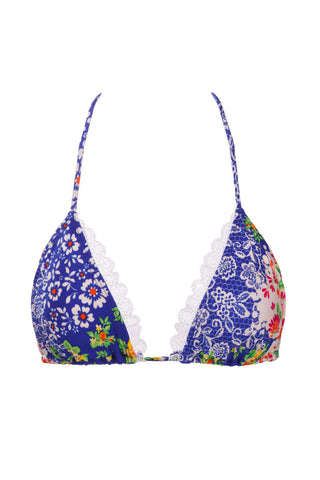 Make a stylish statement in this cute and flirty bikini top by Luli Fama. This top rocks a cute print and lace trim.