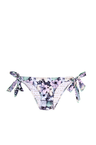 The Winona Triangle Bikini Bottom in Tropical by Tallow Swimwear has adorable side-ties which compliment the multi-colored pattern.